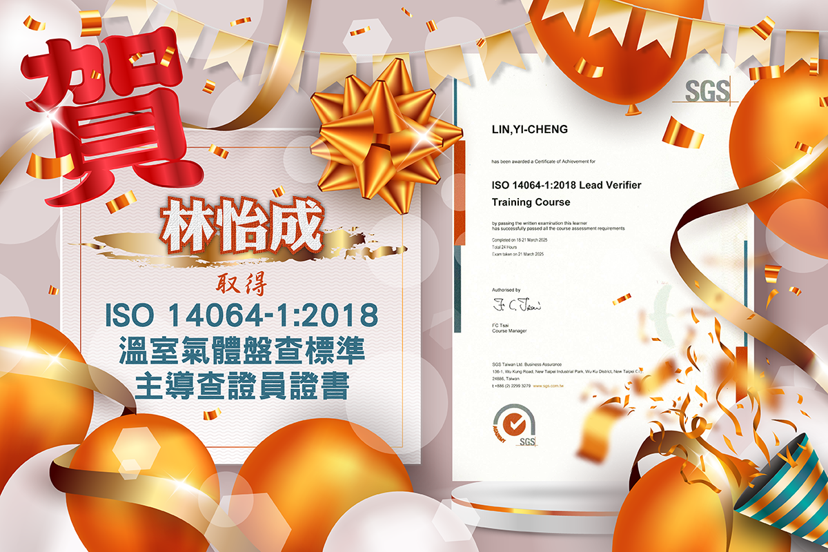 ISO 14064-1:2018 為國際公認的溫室氣體盤查標準,主導查證員證書則代表持證者具備獨立查證企業溫室氣體排放數據的能力,對推動減碳策略與落實永續目標具有重要意義。