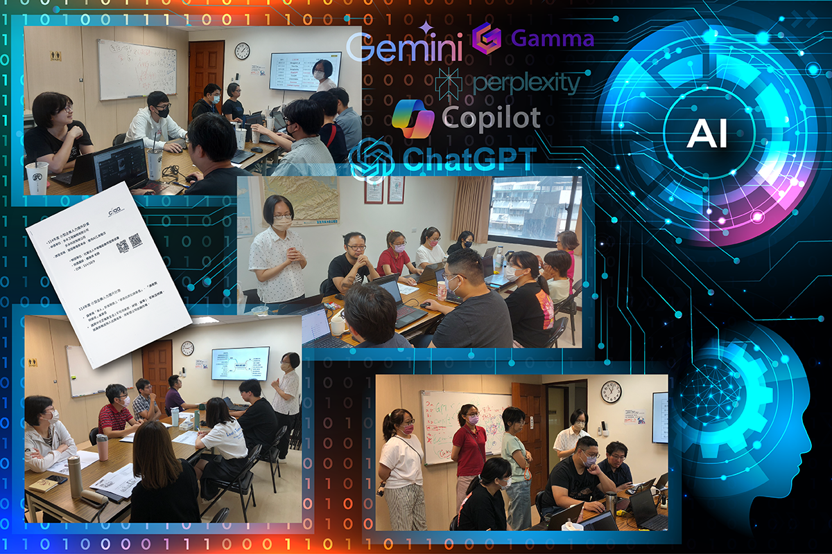 內訓課程【實用AI工具整合】像是替同仁們打開一個新的工具箱,帶領大家一次認識多款AI工具:Copilot、ChatGPT、Gemini、Line AI小幫手、Perplexity、Gamma。